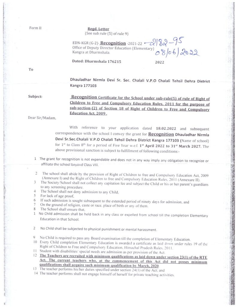 Recognition Certificate